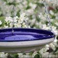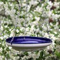 Beautiful to look at and made of durable porcelain, birds enjoy splashing around in this pretty, blue-glazed hanging bird bath.