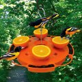 This unique oriole feeder offers up to 32 ounces of nectar, 4 jelly pockets and 4 orange half spikes